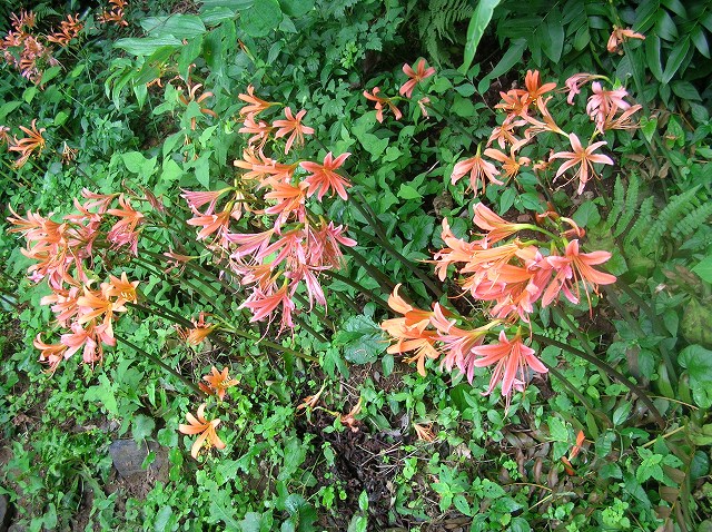 | オオキツネノカミソリを見たくて参加した井原山でした。ヒガンバナに似た(ちょっと違うけど・・)オレンジ色の花をたくさん見ることができました。秋の田んぼのわきに咲くヒガンバナの季節まで今年は、この系統の花が楽しめそうです。鍾乳洞からの自然のクーラーは、本当に気持ち良かったです。林道歩きは、けっこうきつく筋肉痛になりましたが、汗をかいた後の温泉後のビールは、最高でした。行き帰りの高速バスの3本のビデオにも感動。(1本は、外れ)自然も映画も楽しめた福岡への素敵な夏の小旅行でした。