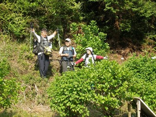 好天に恵まれ、陽ざしが強そうな青空で、紫外線対策をして歩き始めましたが、登山道は大きな樹木が陽ざしを適当に遮ってくれ、そんな対策も不要だったようです。 木々の間を時折ひんやりした風が吹き渡り、自然を感じながら気持ちよく歩くことができましたが、参加の皆様はいかがだったでしょうか。アップダウンが多いということで心配されている方もあったようですが、皆さん元気でゴールインされていました。健脚ですね。 女鈴山からの眺望は、春霞?のせいか見通しは今ひとつでした。でも、陽ざしを避けて木陰でのランチタイムは気持ちよかったですね。いろんな差し入れありがとうございました。 樹木の多い山でお花はあまり期待していなかったのですが、登山道にひょっこり頭を出してきていたギンリョウソウや、キンラン、ホウチャクソウ、エビネ、なんとかスミレ等々・・思っていた以上にいろんな花に出会えました。ご一緒の花博士にめざとく見つけていただいたおかげです。 パーティのしんがりをつとめていただいたはやさん、下見からご協力いただいたwac89さん、花博士さん、久しぶりにお会いできたみなさん、おかげさまで無事に楽しく一日を過ごせました。ありがとうございました。 | ||