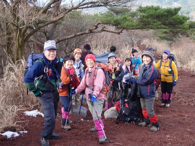 | あんこリーダー、先導のKさん、それに大勢のみなさん有難うございました。申し込み後、毎日天気予報を眺めていました。高原町、霧島市それとえびの高原のピンポイント情報など。晴れマークや曇りマークがころころ代わり、ついに昨日は午後雨マークまで出るという不安定な予報でした。雨具や防寒具いろいろ、おまけにまだ日の目を見ないアイゼンまで準備。しかし、今日は晴れ上がり下山までまったく問題なく、本当に晴れ男&晴れ女が居られたのでしょう。ただ、寒さ対策・強風対策・汗対策などめまぐるしい一日でした。下山中の峰守さんから、小屋を使用をさせて貰って良かったですね。小屋に入ったときのみなさんの歓声は、暖房施設はまったくないのに温かいのと、強風からの開放と安堵感からだったのでしょう。あちこちに昨日の雪も残り、スリルのある山行でした。今年のいい締めになりました。 | ||