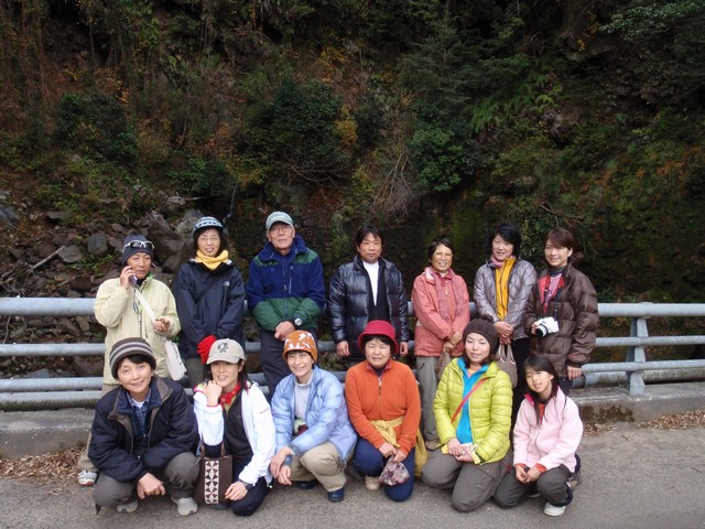 馬の背の強風すごかったですね! 途中の岩に1回だけ身を寄せましたが、両脇がなく細い登山道では余計に強く感じますね。リーダー、Kさんのアドバイスのもと、皆無事鞍部へ フゥー! いい経験でした。 登山道は目を見張らんばかりに整備され、歩きやすくKさんの程よいペースで快調でした。 整備に携わったボランティアの方々に感謝!感謝! 雨も心配された中、枯れた周りの山々の景色に登山道をたどり、いつもあそこを通るんだと妙に納得しました。 神水峡は素晴らしかったので、翌日所用で霧島に行った際、連れ合いを5分間の散策に誘いました。 こんな所があったんだとミニ高千穂峡的風景にびっくりしておりましたが、鹿児島にはこんないい所があるのに観光宣伝が下手だ! こんなコースにしたらいいのに等 観光論議に華を咲かせました。 小倉リーダーはじめご一緒の皆様 お疲れ様でした。 | ||