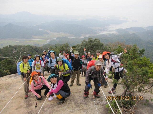 11月末というのに少し暑いくらいの天気、何とか雨にも降られず良かったです。さすが、晴れ女・男のみなさんの力です! イベントがあったせいか、多くの山ガールと出会いました・・・山ボーイはあまり見かけなかったですね。 太郎、次郎どちらも低山ながら変化に富んで、高度感たっぷりでした。特に次郎丸嶽の山頂の切り立った岩の上は足がすくむようでした。それでも皆さん元気にポーズをつけて写真を撮ってましたね! 見晴らしは薄くガスがかかり今一つでしたが、それでも雲仙普賢岳や、天草の島々を見ることもできました。 福岡、大分、熊本、宮崎、鹿児島と九州のいろんな所から参加いただき鹿児島会では珍しく21名という大所帯になりました。それだけ人気の山ということでしょう。初めてお会いする方もありました。これからもまた参加ください。 また、今回はパーティーを3班に分け、各班リーダーに人数確認などをお願いしました。おかげさまで少し楽ができました。ご協力いただいた皆さま、ありがとうございました。 私にとっては、四季山遊会のサポーターをお手伝いするきっかけになった思い出の山です。鹿児島からは少し遠いですが、機会があればまた登りたいなと思う山です。 | ||