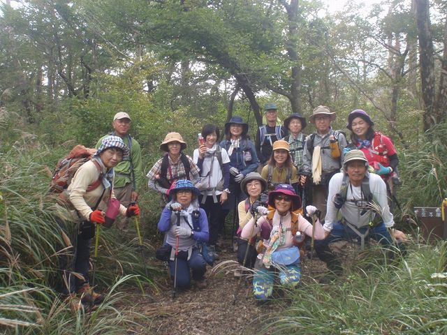 曇りの予報でしたが、青空の広がる気持ちよい天気になりました。 登山路はススキの穂が高く、ルートのわかりにくいところもありましたが、秋の風情を感じる事ができました。お目当てのミカエリソウなどの群生地は時期的に少し遅い感じでしたが、それでも思ってたよりもしっかりとしたお花畑を鑑賞できてよかったです。登山路から眺める高千穂峰も青空に雄大な絶景を見せてくれました。 福岡からの方も含め多くの方に参加いただきました。静かな山の中ににぎやかな声が響いて、楽しいい一日でした。最後は少しお疲れか、声が小さくなったような・・・標高差はあまりないものの10q以上の歩きがいのあるコースでした。 またご一緒しましょう。 | ||