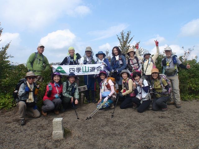 参加の皆様お疲れさまでした。 3年ぶりの竜王・矢岳の企画コースを定員15名の満員御礼で、元気よく出発。心地良い秋のそよ風のせいかスタートからややテンポが早かったような・・Y時の分岐からは、結構すすきが茂っていてプチやぶ漕ぎ・・途中の河原は台風や大雨の影響かまたまた様変わりしていました。 三年前に同じルートを歩いた時は、確かヤマボウシの食べごろで参加者皆で夢中で食べた記憶がありましたが、今日はその場所もわからずに残念でした。途中ずっとヤマボウシの実はあったのですが、青かったりオレンジだったりで食べごろでは、なかったようです。 竜王で少し早めのランチタイムをとり矢岳に向かう途中もすすきが背丈ほどありました。お目当ての「見返り草」花が少し少なく感じ白い花はみあたりませんでしたが何とか間に合ったようです。お天気に恵まれ皆さんとわいわいがやがや楽しい一日をすごせました。ボランティア車の皆さん往復の運転もお疲れさまでした。ありがとうございました。福岡から参加のIさん思いのほか少しハードだったようですが十分に足のケアをなさってくださいね。又、どこかの山でご一緒できる日を楽しみにしています。 | ||