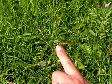 不思議です! 一度飛び立ったトンボが、舞い戻って来て 原田リーダーの指先に 止まりました。北海道雨竜沼湿原での出来事です。少年時代からの特技(裏技?)でしょうか。どのトンボも 魔法にかかったように 指先に!…すごいです。 (Photo Uchida)
