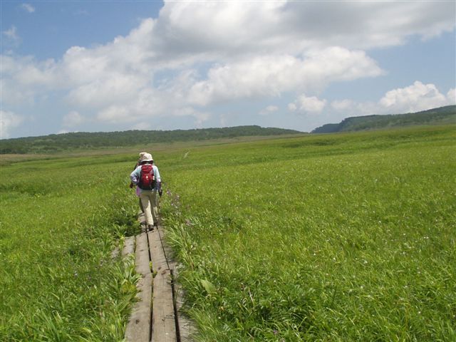 雨竜沼湿原を歩く、いろいろな花と巡り合えるトレッキングです。 (Photo Uchida)